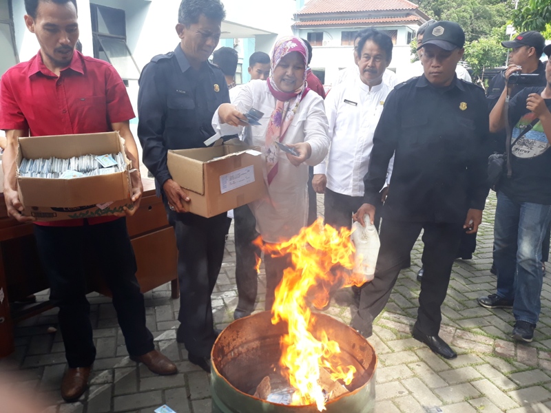 “Kalau sebelumnya itu kami rusak dengan dibolongin atau dipatahkan. Karena adanya surat edaran baru Kemendagri itu harus dibakar, ya kami lakukan dengan dibakar,” kata Kepala Dinas Kependudukan dan Catatan Sipil Kota Tangerang Selatan Dedi Budiawan , Jumat 14 Desember 2018.
