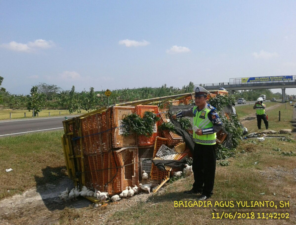 " Mobil terjungkal dengan posisi roda menghadap ke barat," kata Kepala Unit PJR Tol Cipali, AKP Azis Sarifudin, Senin, 11 Juni 2018.