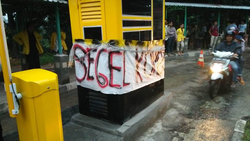 Mahasiswa Segel Loket Parkir di Kawasan UI