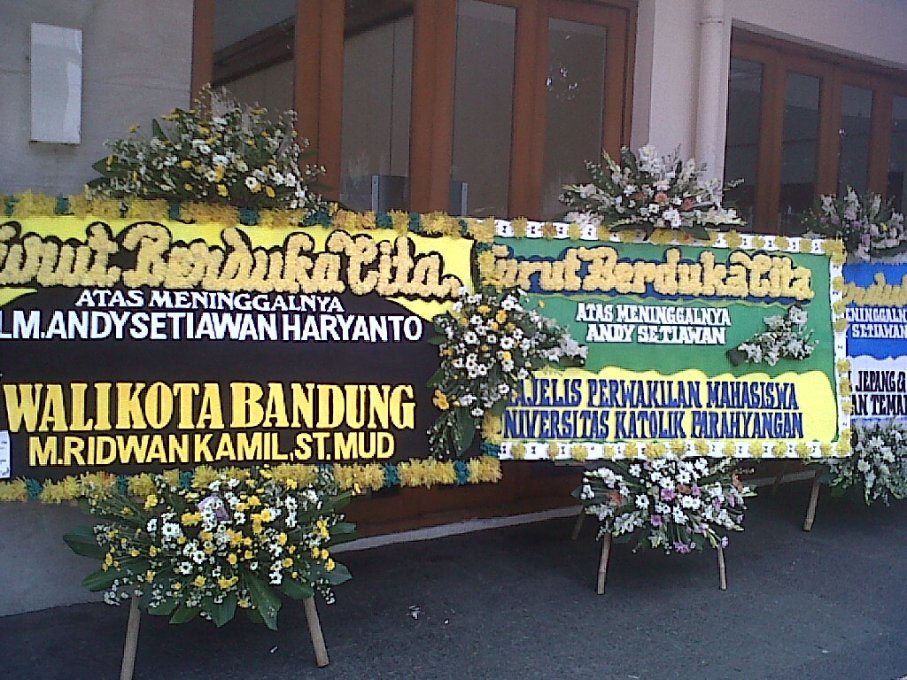 Salah satu karangan bunga ucapan belasungkawa dari Wali Kota Bandung Ridwan Kamil terpampang di antara karangan bunga lainnya. Selain itu, tampak sejumlah sanak saudara serta teman kuliah dari Universitas Parahyangan (Unpar) Bandung yang mulai memadati rumah duka.