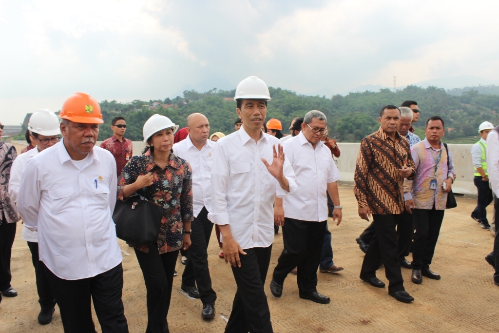 Presiden Joko Widodo saat meninjau pembangunan Jalan Tol Cileunyi-Sumedang-Dawuan (Cisumdawu), Jawa Barat, Kamis 17 Maret 2016 (Foto: MTVN/Ismail)