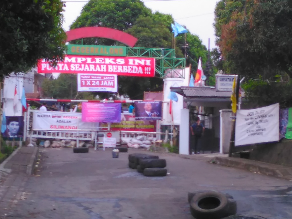 Pantauan Metrotvnews.com, sejumlah warga membakar ban bekas di jalan masuk menuju kompleks. Sementara sebagian warga lainnya berdiri di balik pintu masuk yang ditutup dengan tumpukan pasir dalam karung. Warga mengenakan pita oranye sambil menunggu pihak Kodam III/Siliwangi.