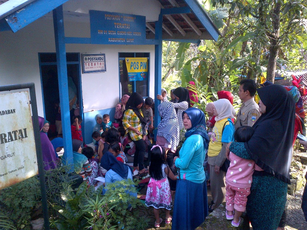 Kepala Dinas Kesehatan Kabupaten Garut Teni Sewara Rifa`i mengatakan, seluruh posyandu yang tersebar di 442 desa dijadikan Pos PIN Polio. Warga setempat membawa bayi dan balita guna mendapatkan vaksin polio gratis.