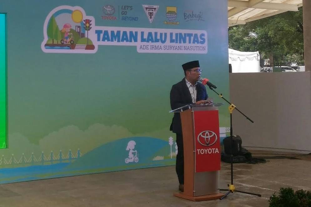 Wali Kota Bandung Ridwan Kamil saat memberi sambutan di acara peresmian Taman Lalu Lintas Bandung, Jumat 29 September 2017. MTVN/Roni Kurniawan