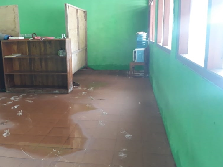 Hampir seluruh lantai ruangan sekolah tersebut tergenang air. Bahkan, Ikhsan menyebut ada sejumlah titik yang genangan airnya hampir mencapai dua meter.