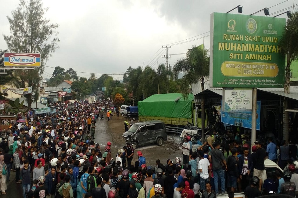 Kejadian bermula saat truk bernomor polisi B 9370 WYT melaju kencang dari arah selatan dan tak terkendali. Kemudian menabrak beberapa kendaraan di depannya hingga batas kota Bumiayu. Truk baru terhenti setelah menabrak pagar depan RSU Muhammadiyah Siti Aminah Bumiayu.