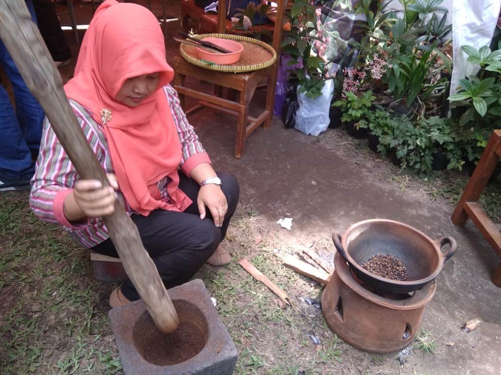 Salah satu proses mengolah kopi di lereng Gunung Merapi secara tradisional.