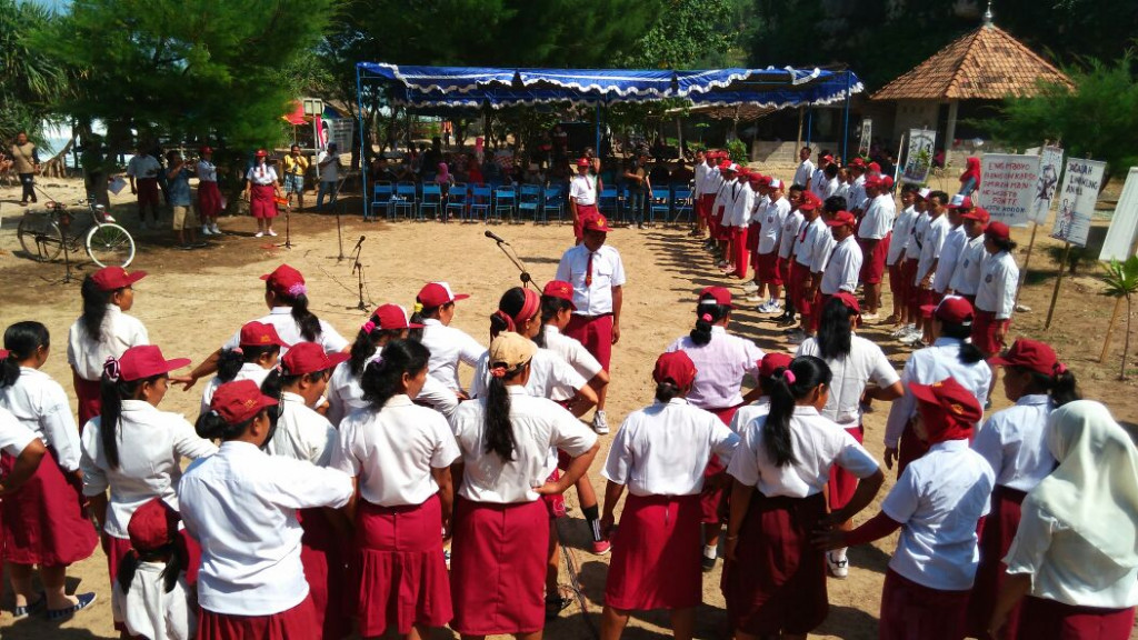 Warga doa bersama setelah upacara bendera di Pantai Watukodok, Gunungkidul, DIY, Rabu (25/5/2016). (Metrotvnews.com/Ahmad Mustaqim)
