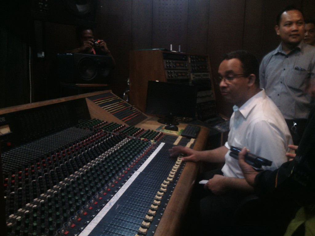 Mendikbud Anies Baswedan berada di studio perusahaan rekaman tertua di Indonesia, Lokananta, Solo, Jateng, Selasa (21/6/2016). (Metrotvnews.com/Pythag Kurniati) (Pythag Kurniati)
