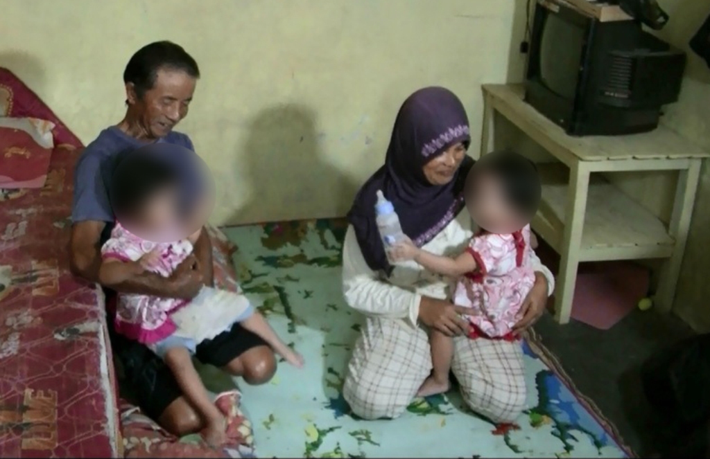 Balita kembar CFa dan CFi dirawat sepasang suami istri di Desa Kauman, Kelurahan Manding, Kota Temanggung, Jawa Tengah (Foto: Metro TV/Kiswantoro)