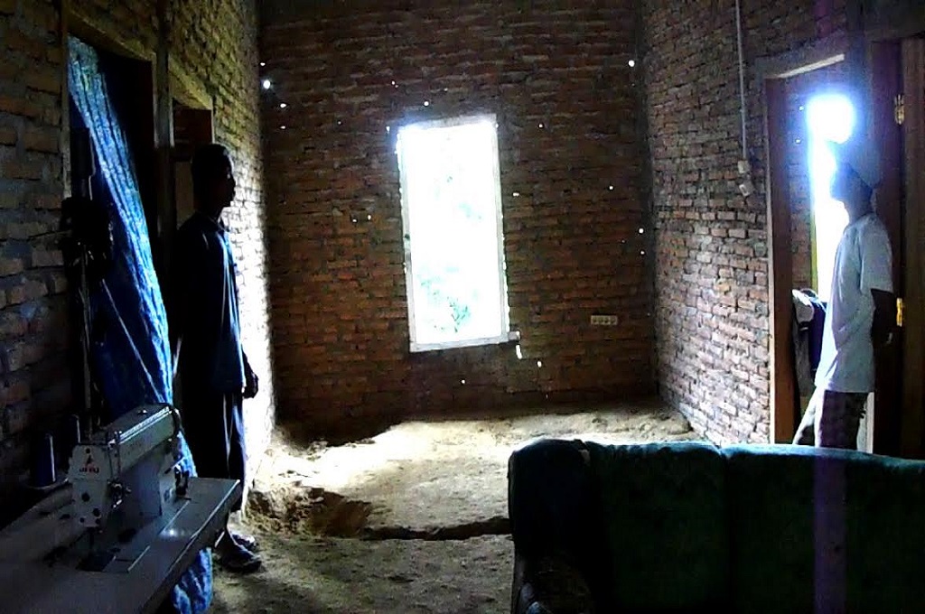 Bukan hanya Rianti, peristiwa serupa juga dialami Sudarman Adi Darmanto. Tanah di dalam rumahnya bergeser dan memicu lubang.