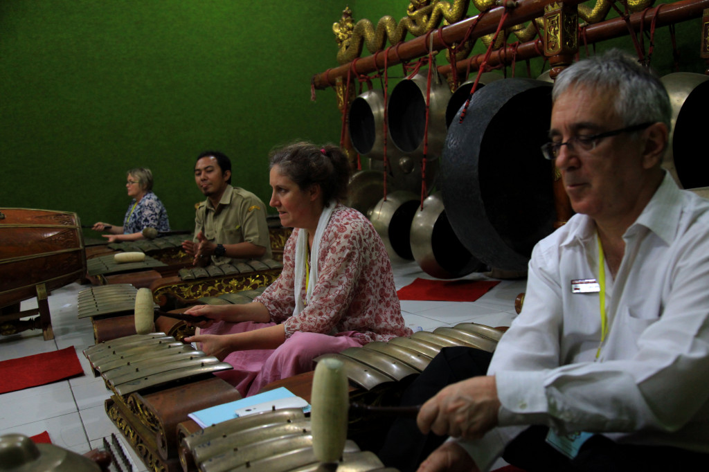 Sejumlah guru asal Australia belajar seni karawitan dalam program Peer Teaching di SMK Negeri 8 Solo, Jateng, Selasa (6/10/2015). (Ant/Maulana Surya) ()