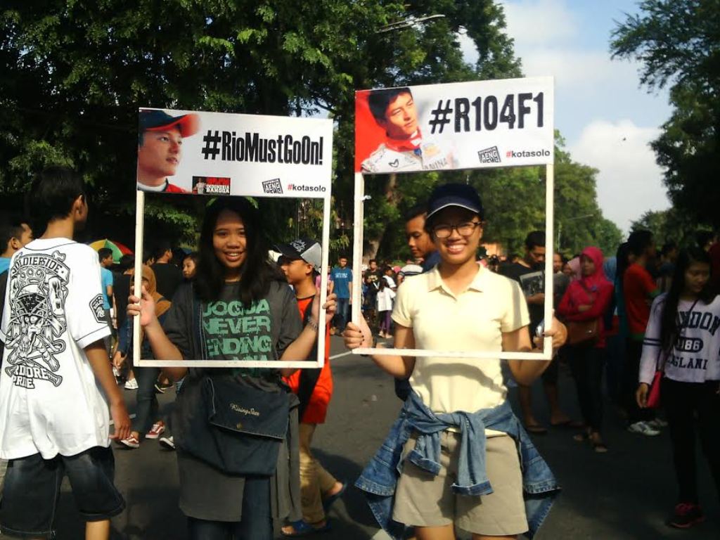Sebelumnya, dukungan untuk Rio juga terus mengalir. Sejumlah warga membubuhkan tanda tangan dan berfoto dengan poster-poster Rio Haryanto pada kegiatan hari bebas kendaraan bermotor (Car Free Day).