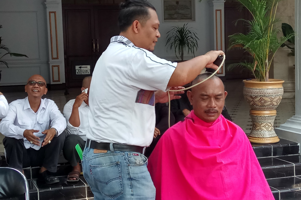 "Saya ikut digundul sebagai partisipasi karena pernah dimutasi oleh Wali Kota tanpa sebab. Gara-gara pimpinan saya dibebastugaskan," kata Baharudin staf Kelurahan yang dimutasi dari kantor Disdukcapil.