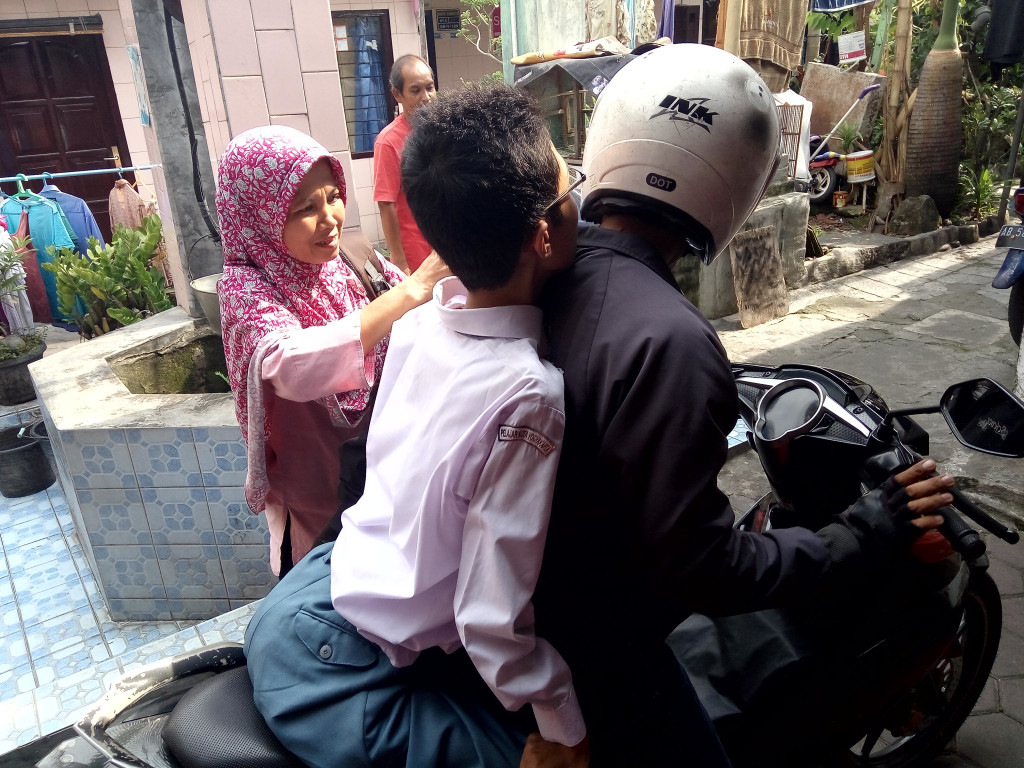 "Sejak SD sampai SMA sekarang, Erry saya antar terus kalau ke sekolah. Yang penting Erry terus semangat belajar, saya sudah senang," katanya.