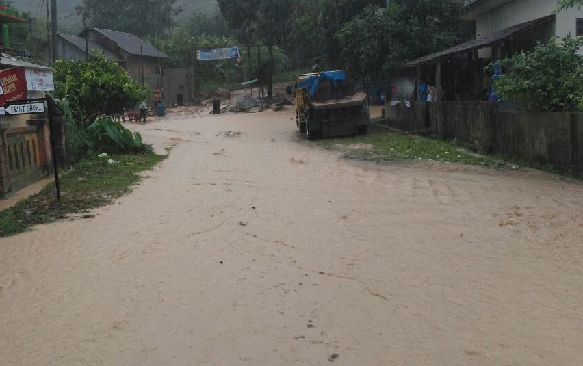 Seperti yang terjadi hari ini, Selasa, 11 Oktober. Genangan air hujan paling parah tampak di depan Pasar Karimunjawa. Air mengalir deras dari Bukit Joko Tuwo membawa material tanah.