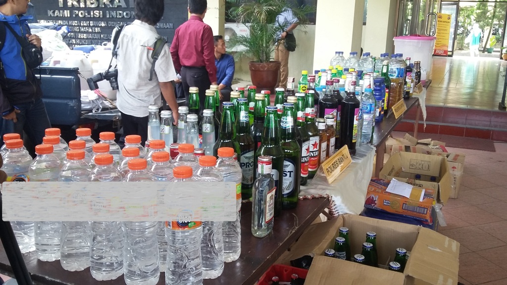 Sejumlah sampel barang bukti miras oplosan serta miras ilegal. Foto: Metrotvnews.com/Ahmad Mustaqim