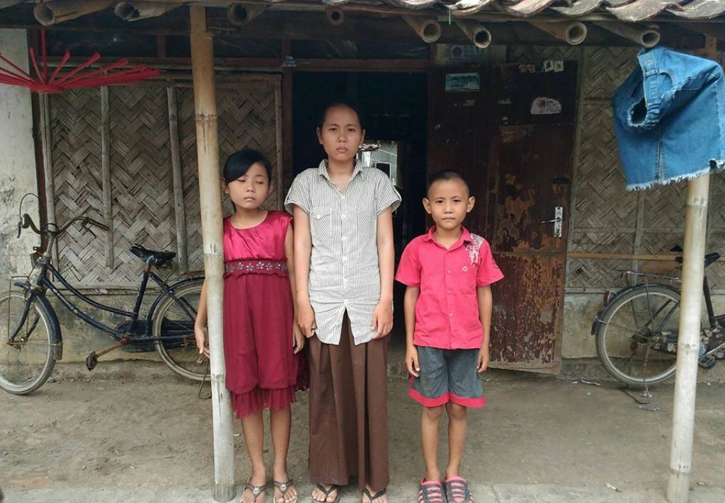 Ratih Ruth Tan dan kedua adiknya di depan rumah gubuknya, di Brebes. Foto: Metrotvnews.com/Kuntoro Tayubi