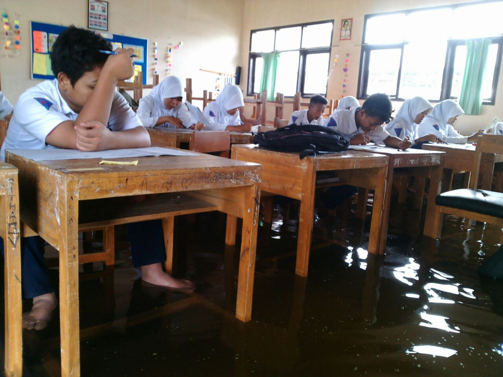 “Jelas mengganggu aktivitas siswa yang sedang mengerjakan UTS. Mereka khawatir, kertas soal dan jawaban akan jatuh ke air. Selain itu, karena ada genangan air, siswa tidak menggunakan alas kaki, dan bisa mengakibatkan gatal-gatal,” tambahnya.