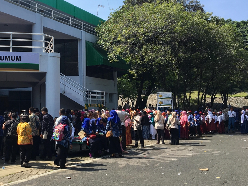Berdasarkan pantauan di lokasi, ribuan ibu-ibu mengantre panjang sejak pukul 08.30 WIB. Barisan ratusan siswa dari berbagai sekolah se-Gresik mengular untuk bisa masuk ke GOR Tri Dharma Petrokimia Gresik.