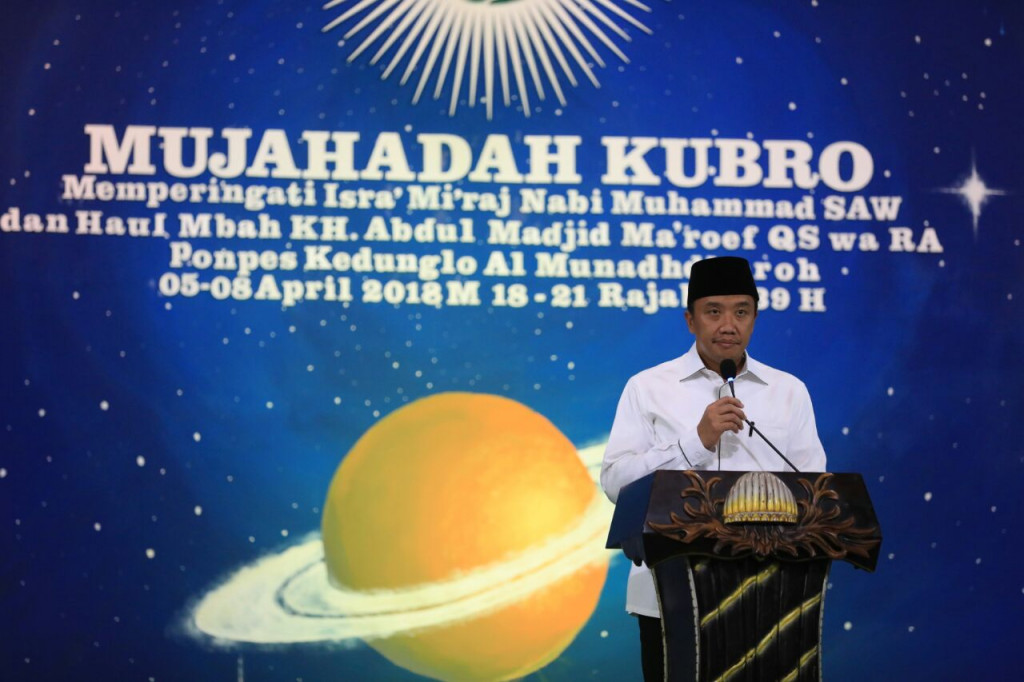 "Saya mohon doa restu agar dapat mempersiapkan Indonesia sebagai tuan rumah Asian Games 2018, dan Asian Para Games 2018 berjalan lancar. Dan ini menjadi pertaruhan Indonesia yang harus sukses penyelenggaraan, dan juga sukses prestasi dengan banyak memperoleh medali emas," kata Menpora, saat menghadiri Mujahadah Kubro Gelombang III Remaja Wahidiah se-Tanah Air, sekaligus memperingati Isra' Mi'raj Nabi Muhammad SAW dan Haul Mbah KH Abdul Madjid Ma'roef QS wa RA di Pondok Pesantren Kedunglo Al Munadhdhoroh, Kediri, Jawa Timur, Sabtu 7 April 2018.