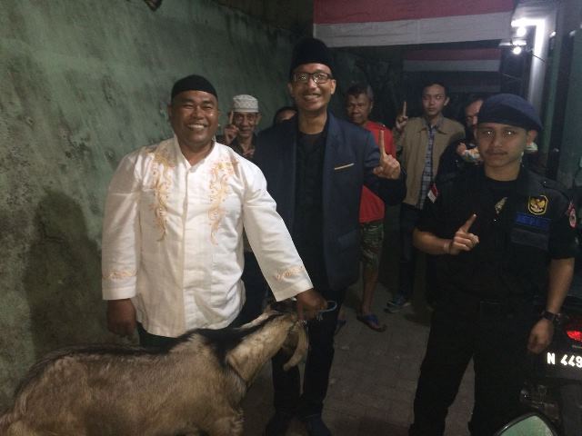 "Saya dengar di RT 09 ini sudah lama tak mengadakan penyembelihan hewan kurban. Jadi kami sumbang kambing, biar warga di sini juga merasakan kebahagiaan berkurban," ungkap Gagah.