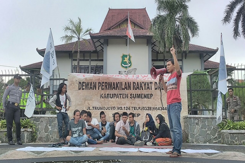 Dalam aksi ini, mereka membawa spanduk bertulis ‘Raperda Tidak Selesai, DPRD Sumenep Gagal’. Mereka juga membentangkan sejumlah poster bertulis kecaman terhadap anggota dewan.