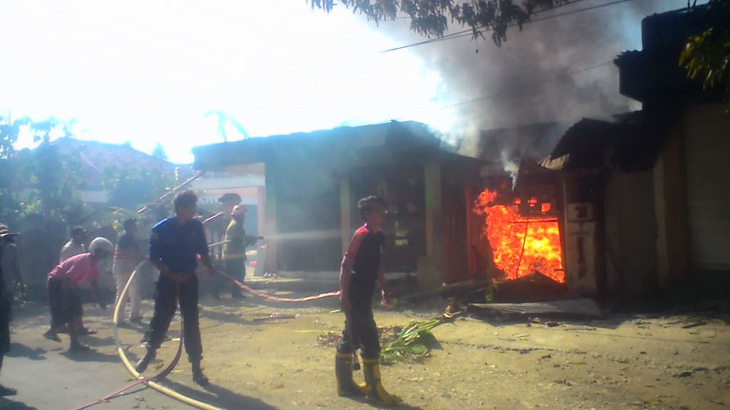 Informasi di lapangan menyebutkan, kebakaran berawal dari percikan api di pom mini. Api langsung membesar dan merembet ke dua toko di sebelahnya. Setelah itu, kobaran api terus menjalar ke rumah di belakang pom mini. Bahan-bahan di dalam toko ludes, termasuk atap juga menjadi arang. Sementara atap rumah ambruk akibat dilahap api.