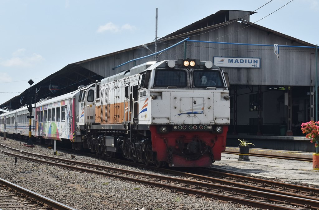 Kereta Api (KA) Argo Wilis relasi Surabaya-Bandung melintas di Stasiun KA Madiun, Jawa Timur. (ANT/Siswowidodo) (Kusbandono)