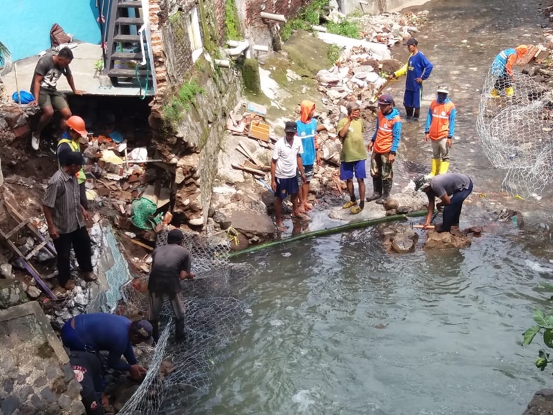 Petugas menormalisasi sungai di Kota Malang. Foto: Istimewa/Humas Pemkot Malang (Daviq Umar Al Faruq)