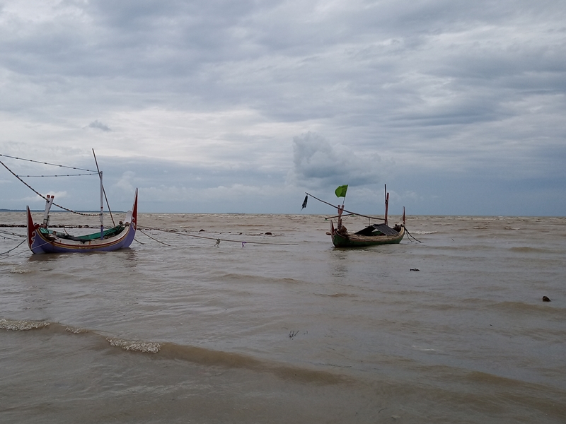 Sejumlah perahu nelayan terlihat sudah menepi sejak beberapa hari lalu di Desa Pakandangan Barat, Kecamatan Bluto. Ketinggian ombak di wilayah pesisir tersebut cukup membuat nelayan khawatir menangkap ikan.