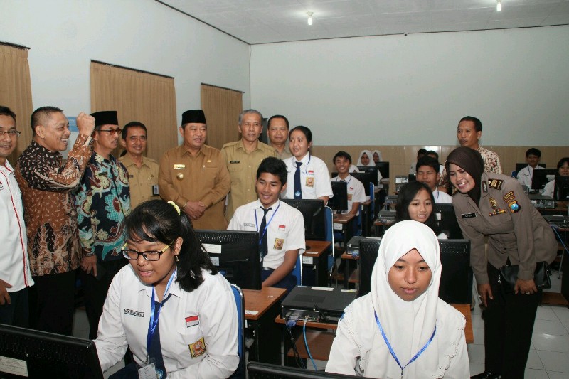 Bupati Sidoarjo Saiful Ilah memantau pelaksanaan UNBK tingkat SMP