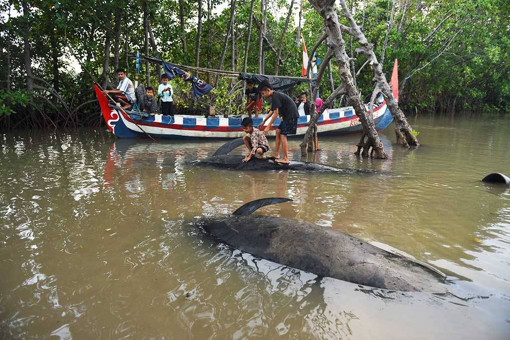 medcom.id, Probolinggo: Sebanyak 24 ikan paus jenis pilot sirip pendek yang terdampar di hutan bakau akibat cuaca ekstrem, berhasil dikembalikan ke laut.