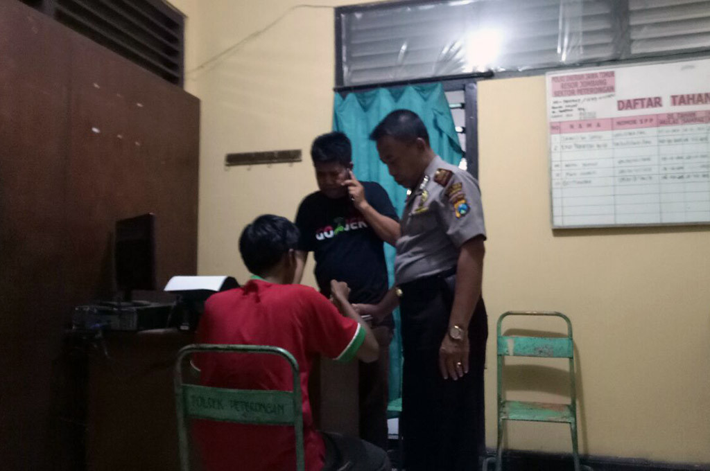 Pelaku saat menjalani pemeriksaan di Mapolsek Peterongan -- MTVN/Nurul Hidayat (Nurul Hidayat)