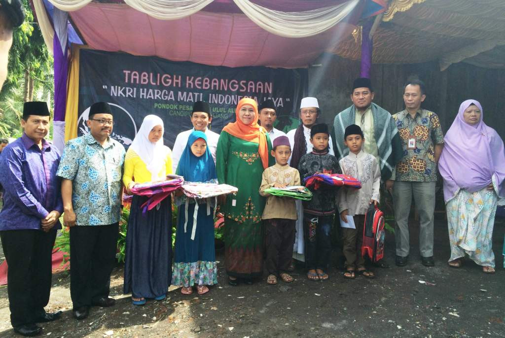 Pada akhir acara, Khofifah memberikan bantuan perlengkapan sekolah dan santunan anak yatim sebesar Rp25 Juta, yang diberikan simbolis kepada lima santri Pondok Pesantren Ulul Albab.