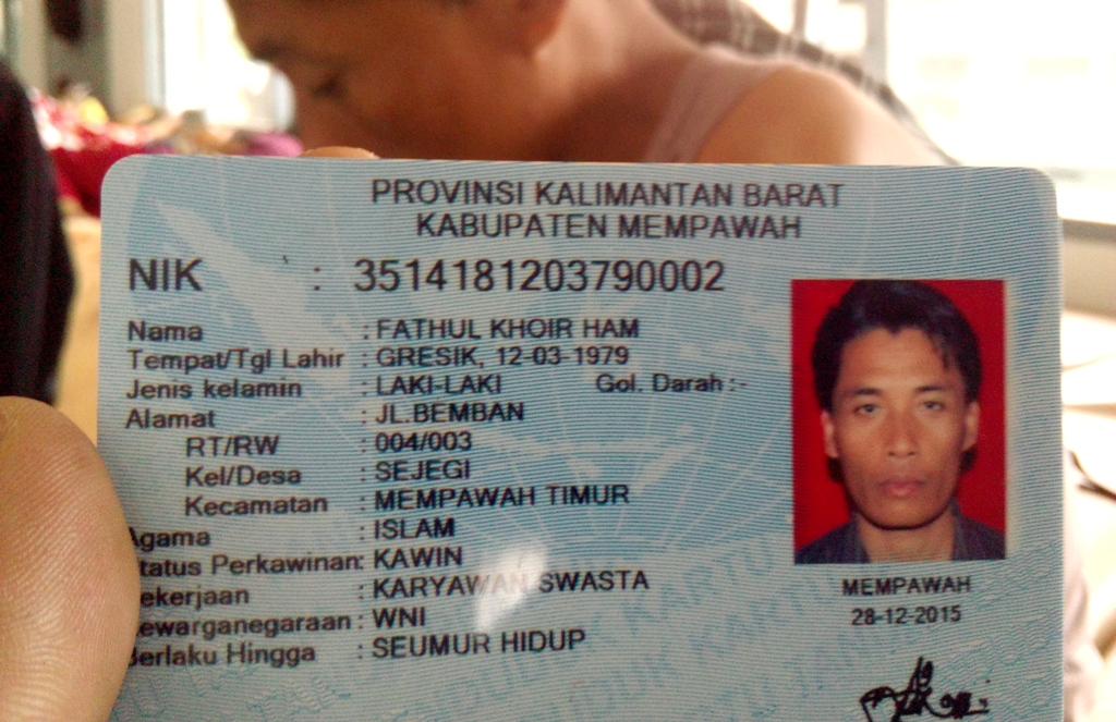 Seperti yang tertera di KTP milik Fatkhul Khoir Ham. Dia memang asli kelahiran Kabupaten Gresik, Jawa Timur. Lalu dia pindah kependudukannya dan transmigrasi ke Kalimantan Barat, tepatnya di Desa Sejegi, Kecamatan Mempawah Timur, Kabupaten Mempawah.