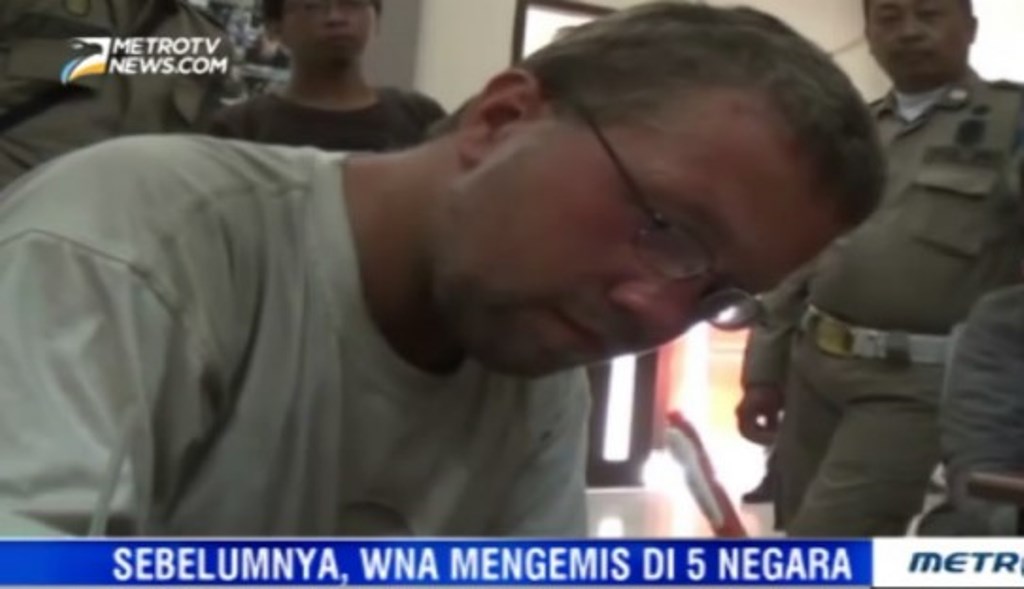 Pria asal Denmark, Benjamin Holst, 30, yang mengemis di Surabaya saat berurusan dengan Imigrasi Kelas I Khusus Surabaya, Jawa Timur (Foto: dok/Metro TV)