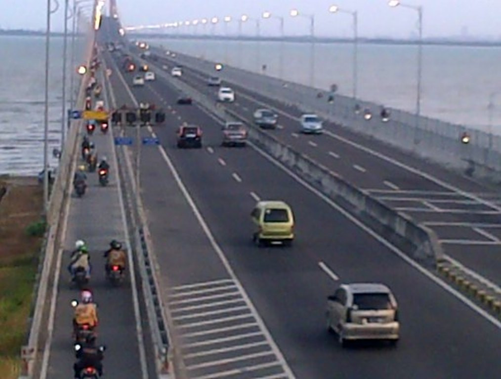 Arus lalu lintas di Jembatan Suramadu tampak ramai. Kendaraan terus mengalir dari Bangkalan, Madura menuju Surabaya. Meski demikian, tak ada antrean di pintu Tol Suramadu.