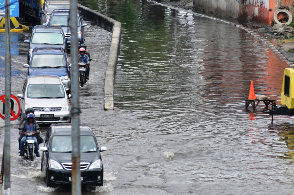 "Untuk kendaraan besar masih bisa jalan tapi sepeda motor tidak bisa masuk ke jalan tersebut karena ketinggian air setengah meter," kata salah satu warga Benowo, Hamdani, kepada Media Indonesia, Jumat (6/2/2015).