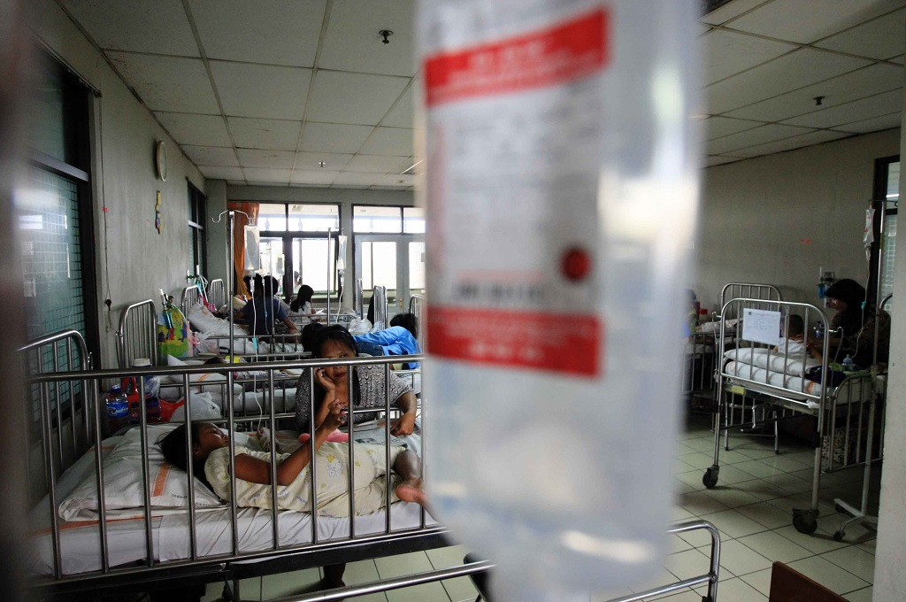 RS tak dapat menampung lonjakan pasien. Sehingga banyak pasien, sebagian besar anak-anak, dirawat di lorong. Mereka berbaring dengan alas seadanya. Sebab persediaan ranjang pasien habis digunakan.