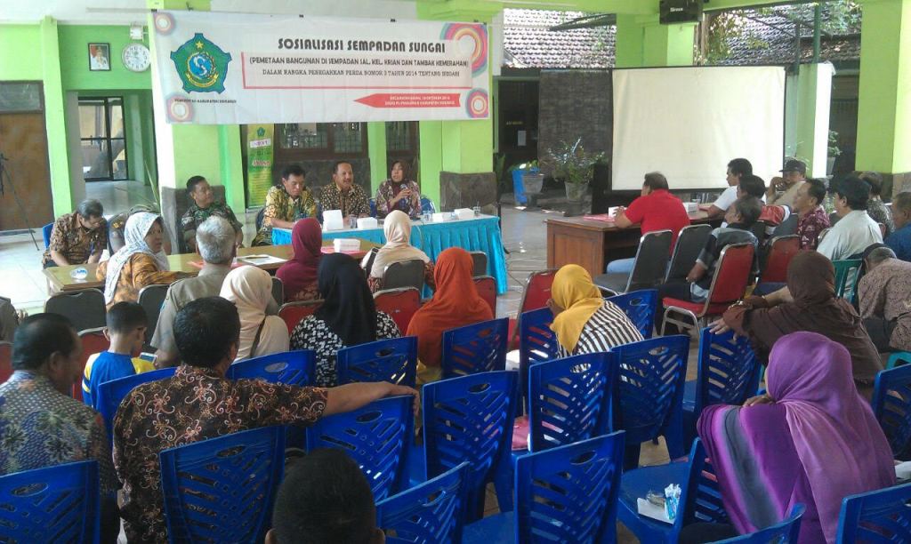 "Normalisasi sungai sudah menjadi program prioritas. Makanya untuk mempercepat itu, harus kami sampaikan terlebih dahulu kepada masyarakat," ujar Kepala Bidang Bina Manfaat Dinas PU. Pengairan Kabupaten Sidoarjo, Bambang Tjatur Miarso, saat Sosialisasi Sempadan Sungai di Kelurahan Krian dan Kelurahan Tambak Kemerahan, Kecamatan Krian, Sidoarjo, Selasa (18/10/2016).