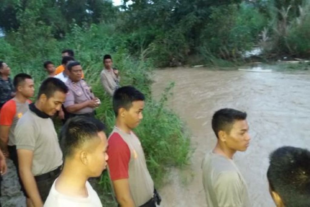 Aparat TNI, polisi dan Tim Reaksi Cepat (TRC) BPBD Sampang bersama warga masih menyisir sungai untuk mencari keberadaan korban.