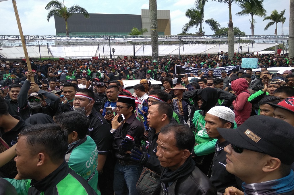 Ribuan orang mendatangi kantor DPRD Sumsel pada Rabu siang 23 Agustus 2017. Yoyon SP, koordinator aksi, mengatakan Mahkamah Agung membatalkan sejumlah poin terkait pengoperasian taksi online. Yoyon meminta segenap pihak untuk mematuhi keputusan tersebut.